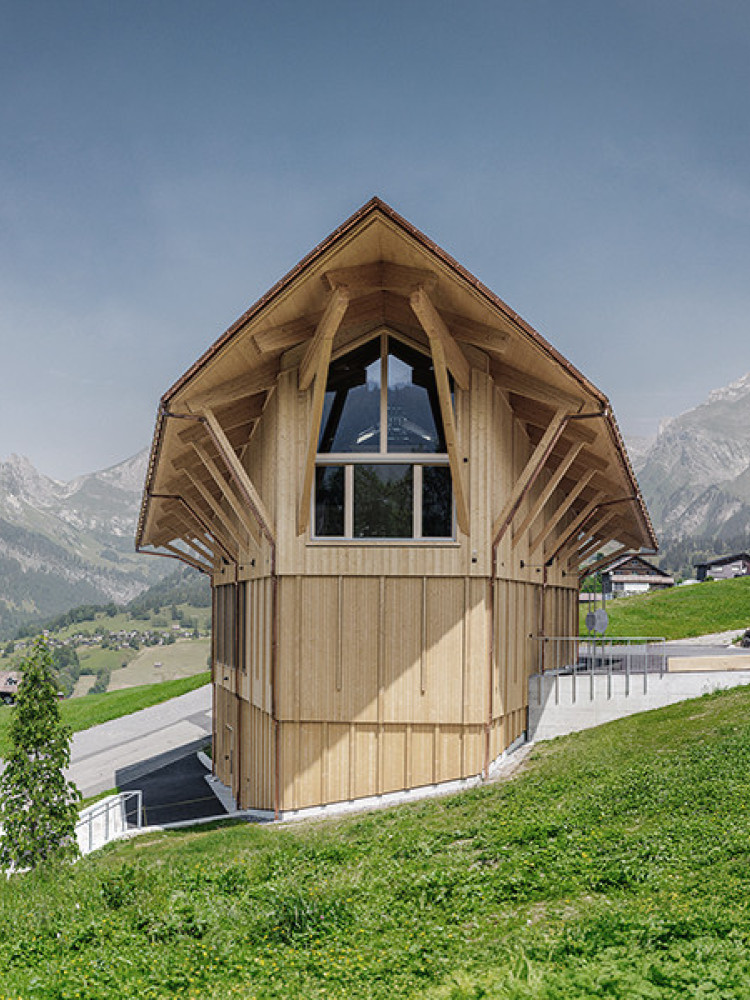 Von hier steigst du auf die Bergbahnen um: von der Bergstation Oberdorf oder Iltios führt ein gemütlicher Spaziergang von etwa 25 Minuten direkt zum Klanghaus und Resonanzzentrum Peter Roth.